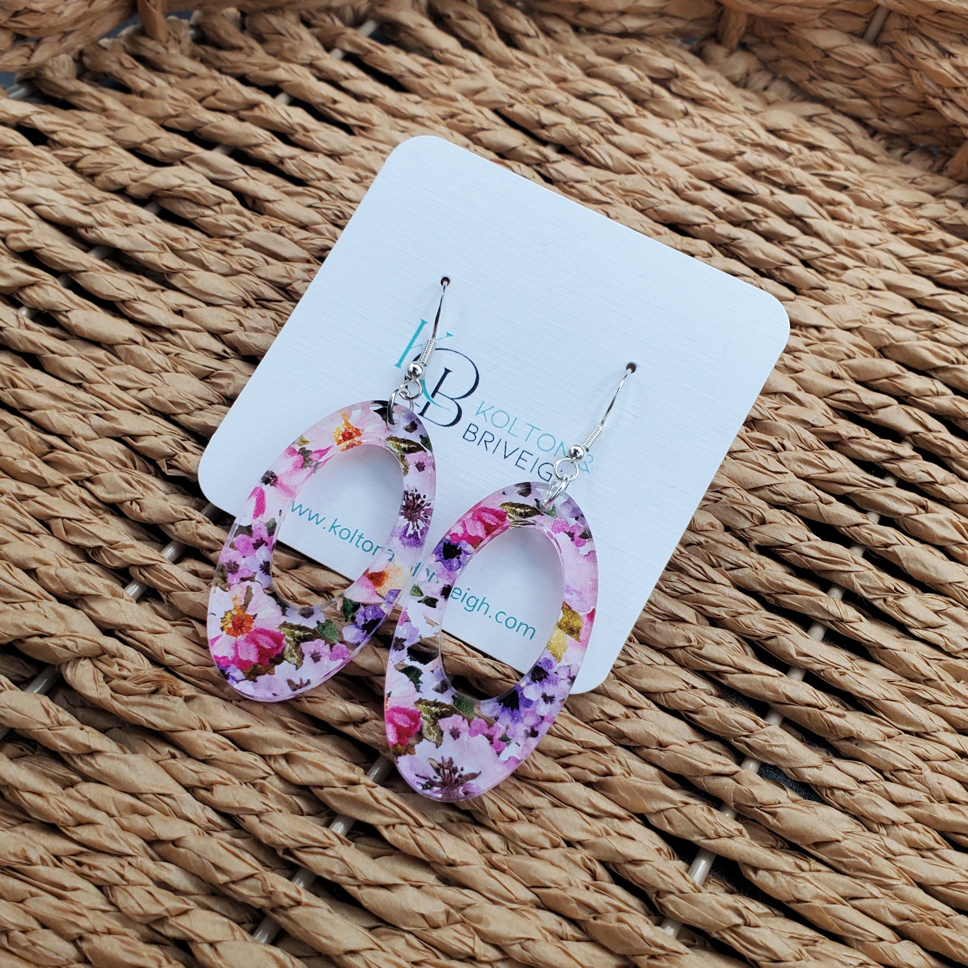 Pink and Purple Floral Oval Earrings